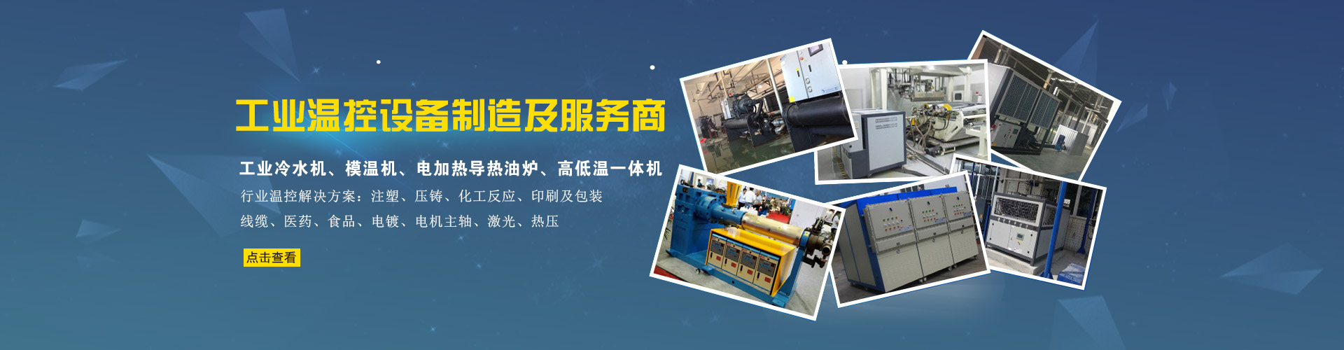 水溫機(運水式模溫機) 油溫機(運油式模溫機) 工業(yè)冷水機 / 冷凍機 高低溫一體機 行業(yè)專用溫控設備 非標溫控設備定制